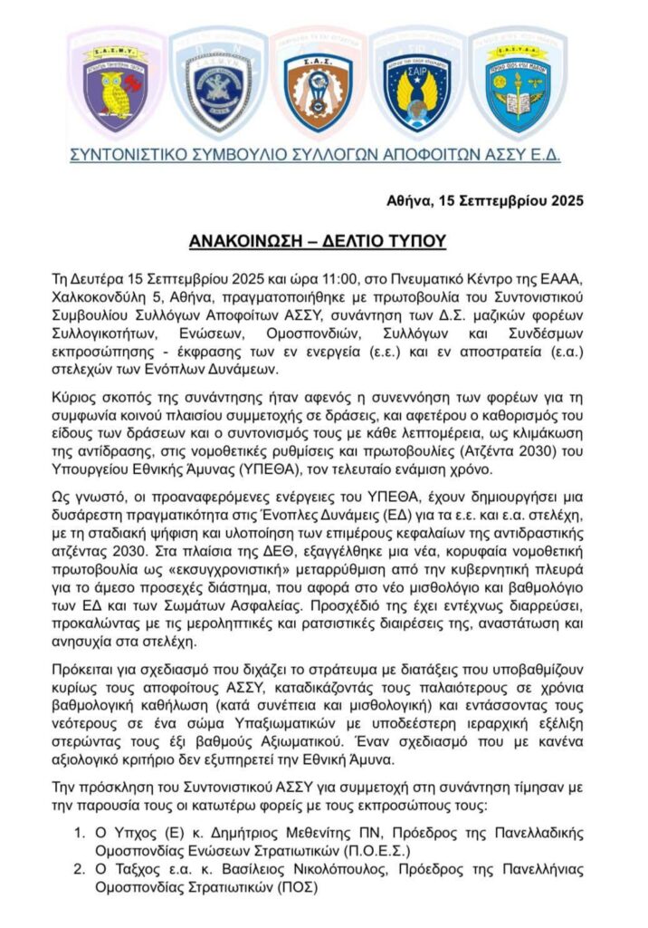 Αρχική » Δελτίο Τύπου Συντονιστικού ΑΣΣΥ (15/9/2025)Δελτίο Τύπου Συντονιστικού ΑΣΣΥ (15/9/2025)από Χρήστος Κόϊος18/09/2025
