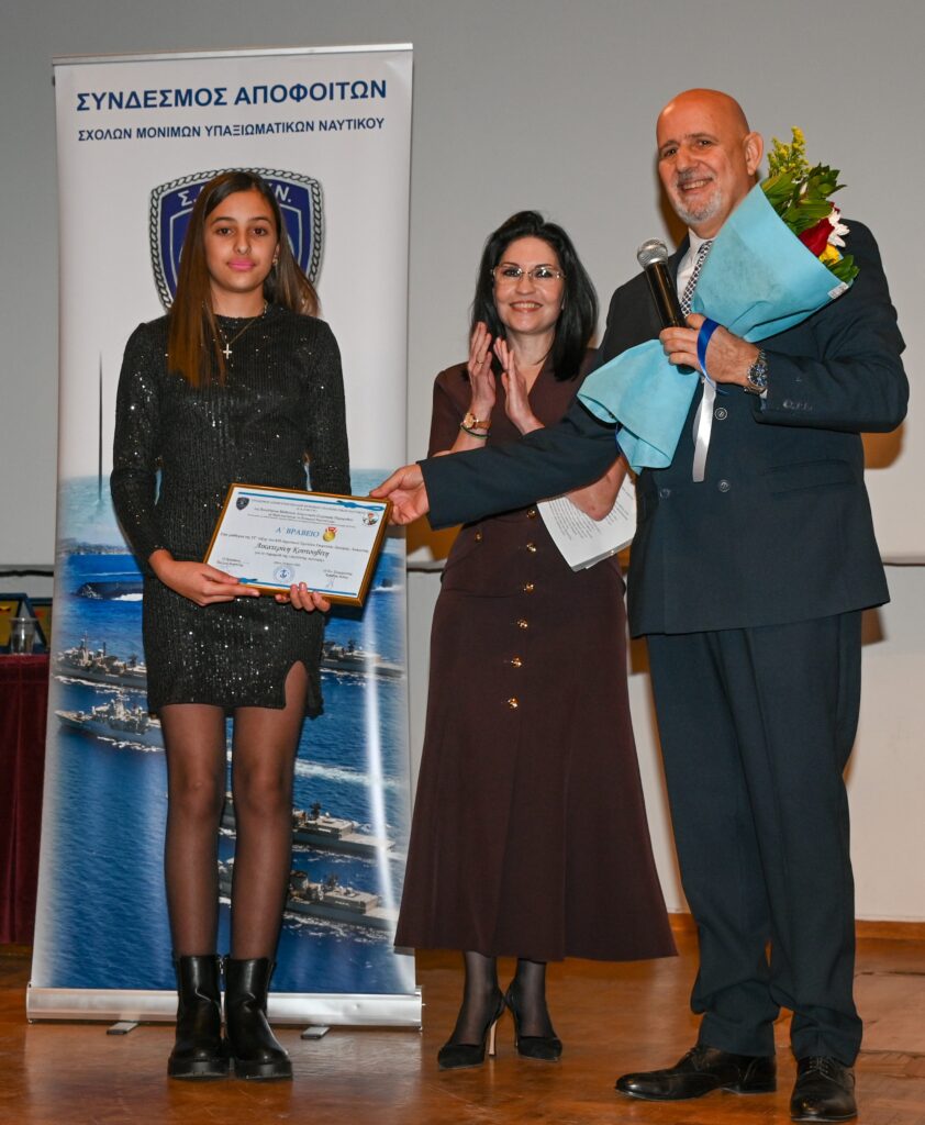 Τέλος οι απονομές ολοκληρώθηκαν με τη βράβευση της μικρής Αικατερίνης Κουτσοβίτη νικήτριας του Α΄Πανελλήνιου διαγωνισμού παιδικού παραμυθιού για το έτος 2025 που διοργάνωσε ο Σύνδεσμος μας με θέμα το Πολεμικό Ναυτικό.