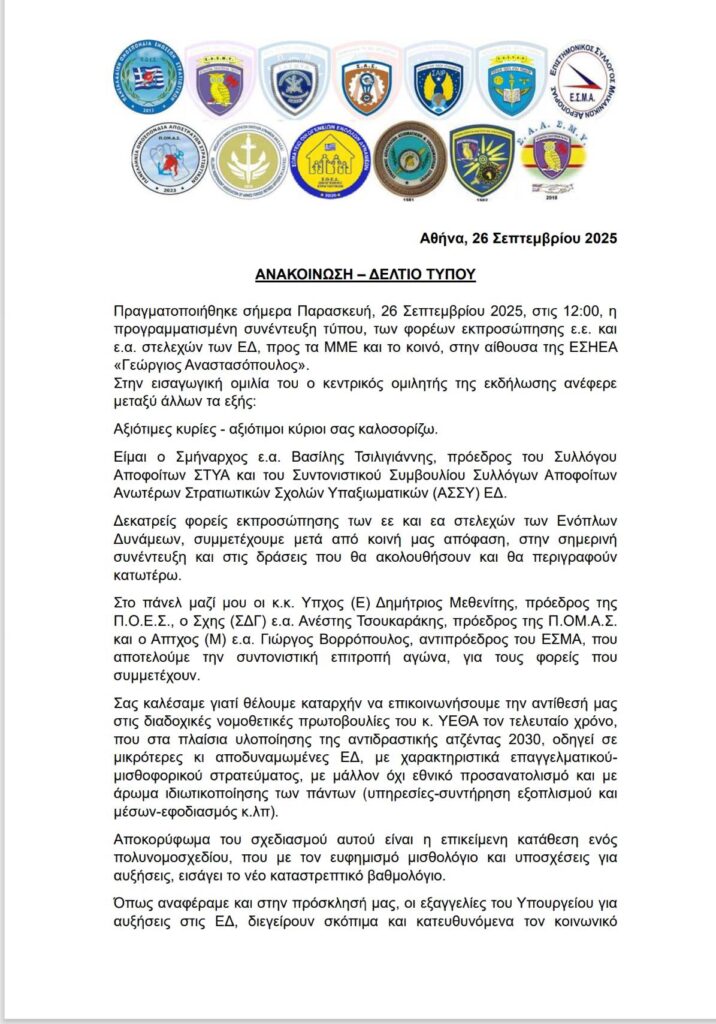 Αρχική » Δελτίο Τύπου Συντονιστικού ΑΣΣΥ (26/9/2025).Δελτίο Τύπου Συντονιστικού ΑΣΣΥ (26/9/2025).από Χρήστος Κόϊος27/09/202527/09/2025
